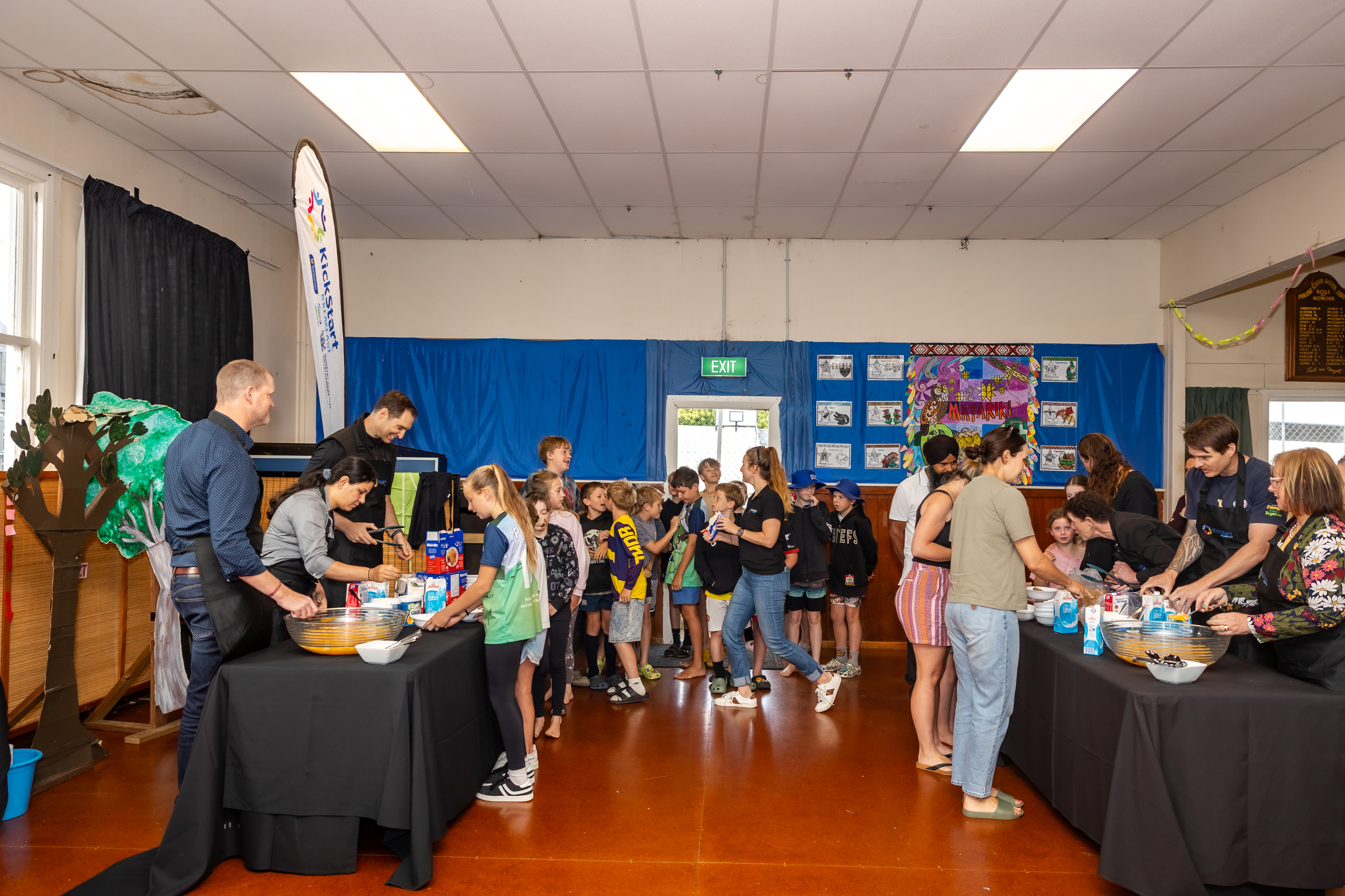 Pokuru School joined KickStart Breakfast back in 2014 and the semi-rural school has around 30 students every school day arrive in the hall for some breakfast! The club is supported by a group of parents and volunteers, including Sue Barton, a Fonterra farmer, who says volunteering is her way of staying connected with the community.